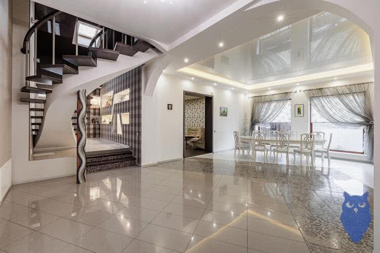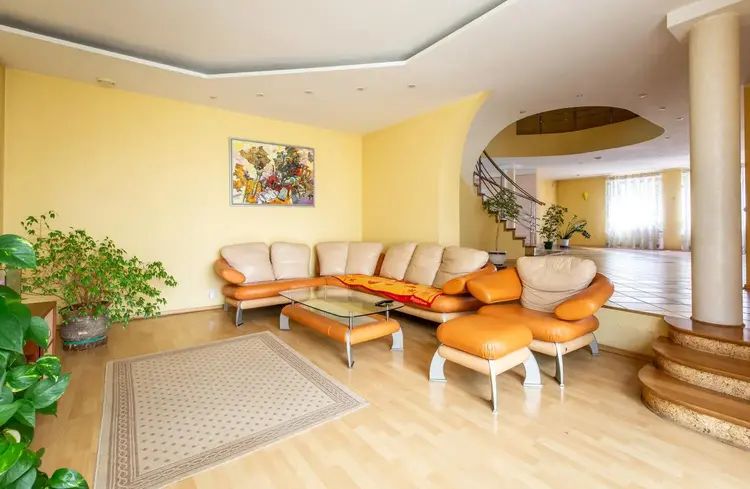 Дом занимает три полноценных этажа, каждый из которых продуман до мелочей. Два гаража и множество кладовых помещений. Уникальные архитектурные решения создают гармонию между внутренним пространством и окружающей средой, а также обеспечивают естественное освещение в каждом уголке дома.