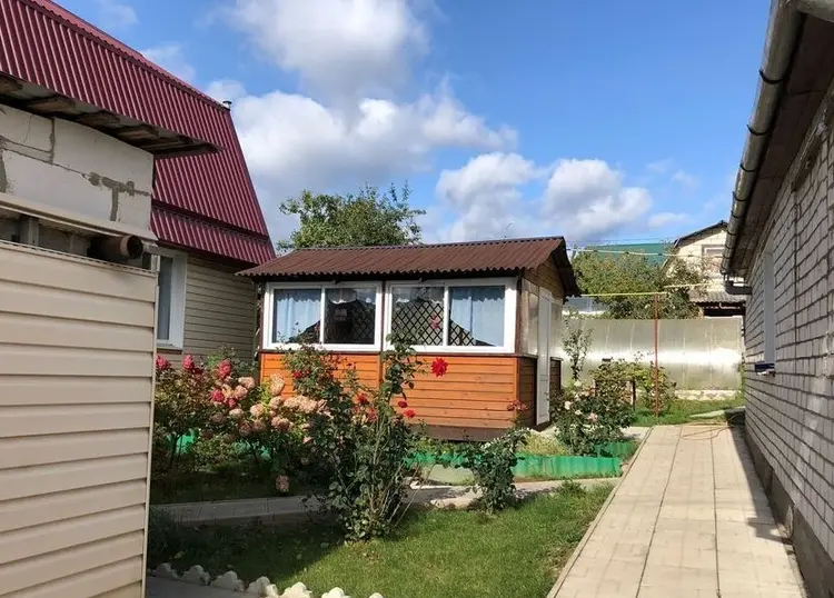Ровный, ухоженный участок площадью 8 соток земли. На участке аккуратно выложены дорожки из плитки. А также посажены цветы (розы, гортензии и др.), молодые плодовые деревья и кустарники.