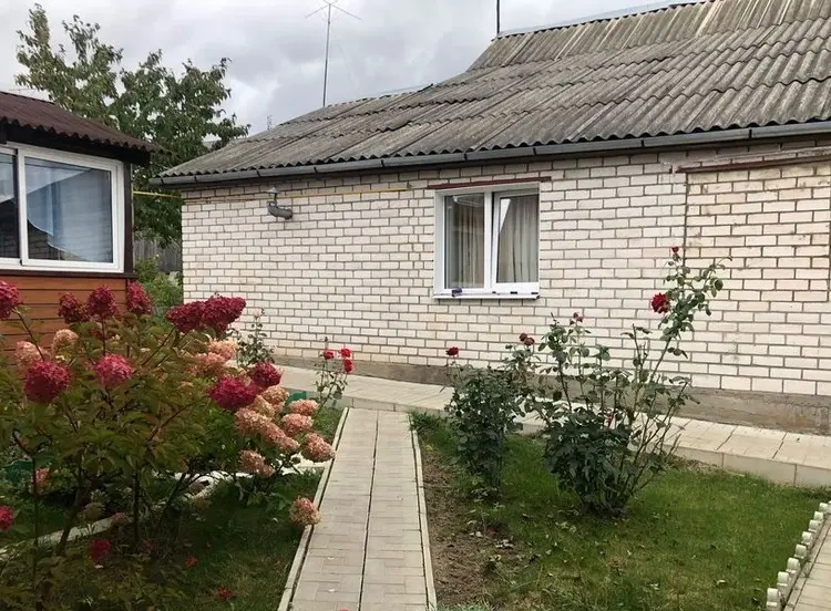 Первый дом представляет собой одноэтажную деревянную постройку, обложенную кирпичом и частично обшитую сайдингом. Крыша - шифер. Окна ПВХ. Меж/комнатные двери деревянные (массив).