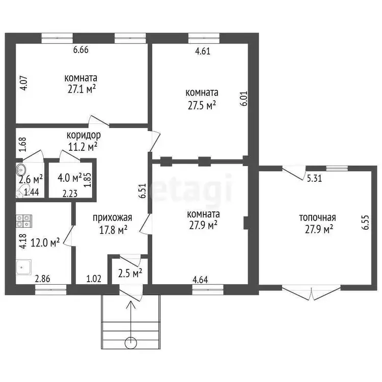 Три просторные комнаты размером 27,1 м2, 27,5 м2 и 27,9 м2 - достаточно места для личного пространства каждого члена семьи.