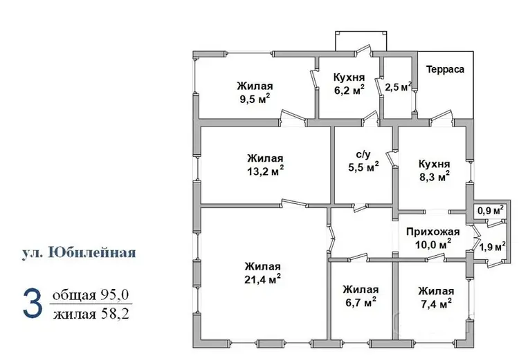 Планировка дома дает возможность, при необходимости, использовать его для проживания двух семей (так некоторое время и было): оборудованы два помещения под кухню, есть второй вход в дом.