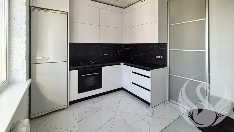 Установлен полный комплект новой качественной мебели — просторные шкафы, прочные столешницы, удобные ящики.