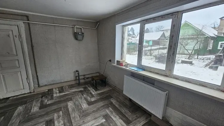 Дом бревенчатый, крепкий. В жилых комнатах пол деревянный, в остальных помещениях – залита стяжка, постелен линолеум.