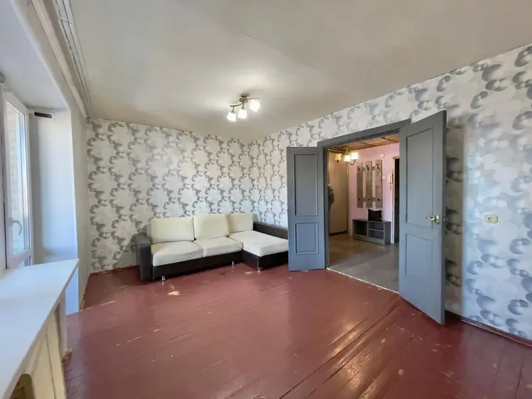 Квартира располагается на третьем этаже шестиэтажного кирпичного дома, стены фасада утеплены. В квартире установлены окна ПВХ, балкон застеклен, металлическая входная дверь, счетчики на воду. Кухня 8,8 кв.м., жилые комнаты 15,1 и 13,3 кв.м. Пол на кухне бетонный, покрыт линолеумом, в прихожей и жилых комнатах – деревянная доска на лагах. Состояние квартиры жилое, вся мебель остается при продаже.