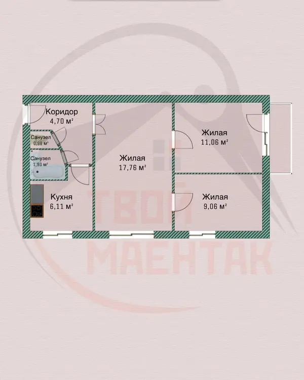 готовая к проживанию. Квартира располагается на 3-м этаже 5-и этажного дома.