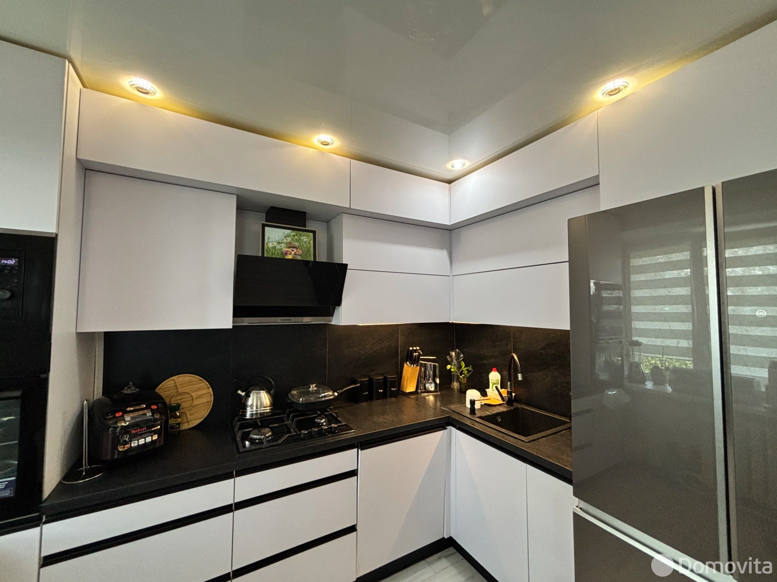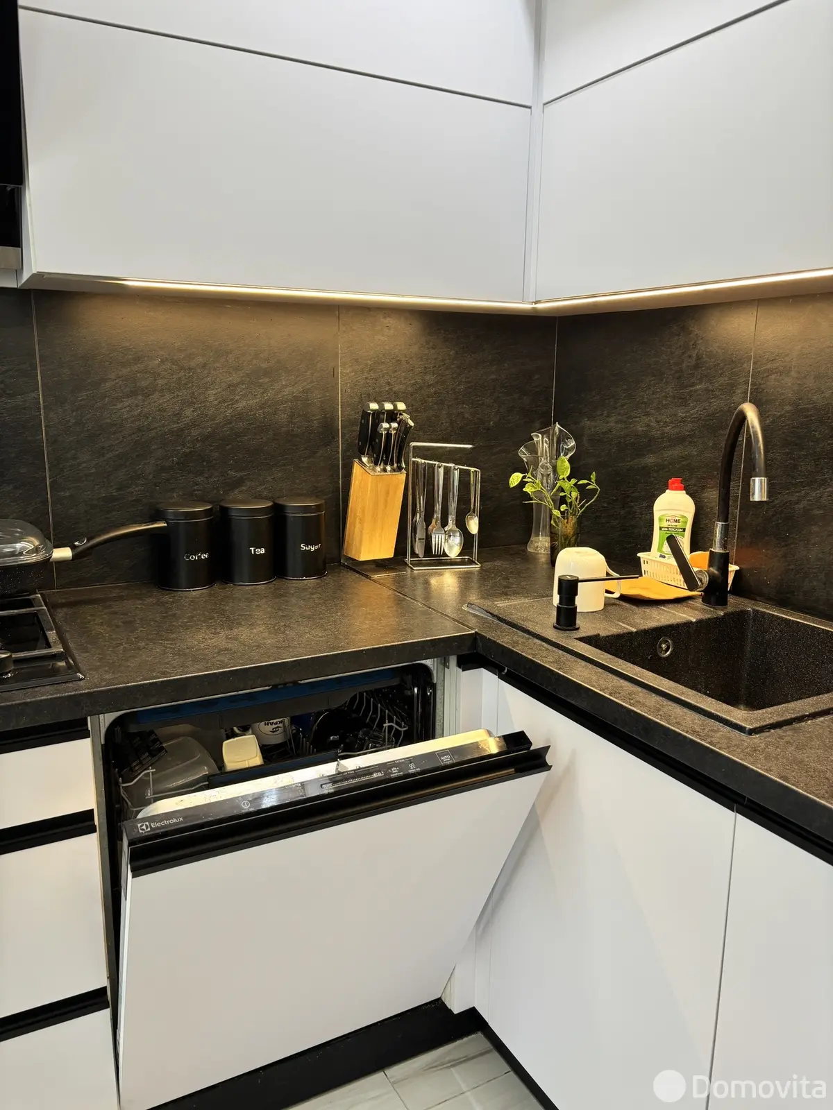 Кухня оснащена новым кухонным гарнитуром с техникой Electrolux: плита, встроенная посудомоечная машинка, духовой шкаф и микроволновая печь — всё для того, чтобы готовить было одно удовольствие. Напольное покрытие в квартире сочетает плитку и ламинат, что обеспечивает практичность и уют.