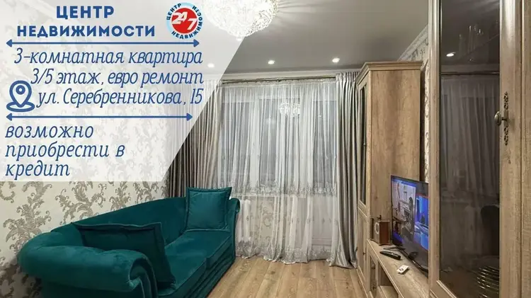 В продаже 3-комнатная квартира по адресу улица Серебренникова 15.