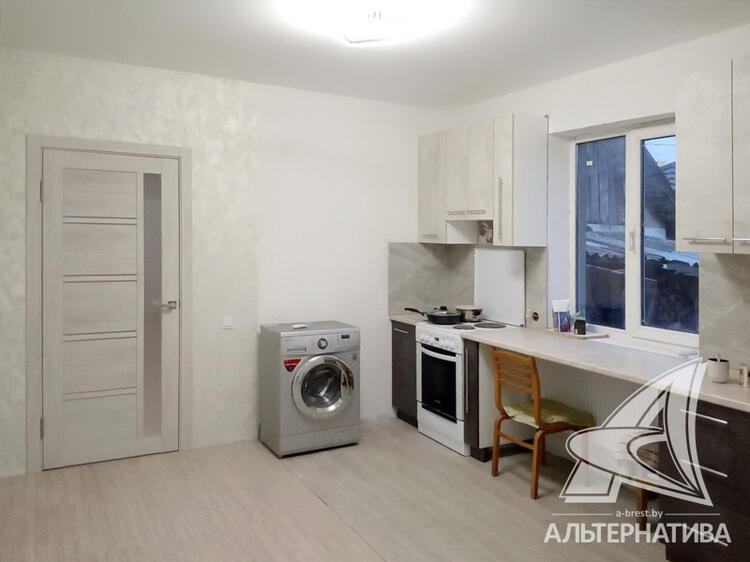 Квартира в блокированном жилом доме в г.Бресте. 1959 г.п. 1 этаж. Общ.СНБ - 57,8 кв.м, общ.- 57,8 кв.м, жил.- 27,8 кв.м, кух.- 17,1 кв.м. 2 комнаты, высота потолка - 2,74 м.