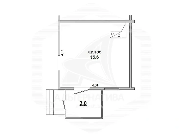 Квартира в блокированном жилом доме в г.Бресте. 1925 г.п. 1 этаж. Общ.СНБ - 19,4 кв.м, общ.- 19,4 кв.м, жил.- 15,6 кв.м, 1 комната, высота потолка - 2,74 м.