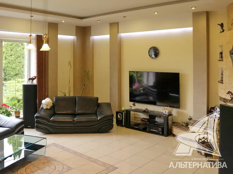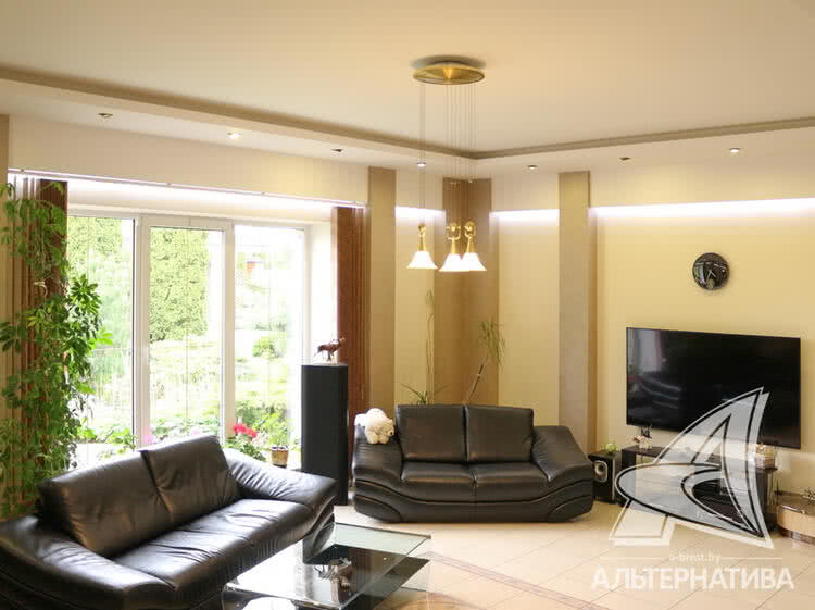 Жилой дом в г.Бресте. 2003 г.п. 1 этаж, мансарда. Общ.СНБ - 377,8 кв.м, общ.- 327,6 кв.м, жил.- 165,0 кв.м, кух.- 16,8 кв.м. 4 комнаты, потолки - 3,2 м.