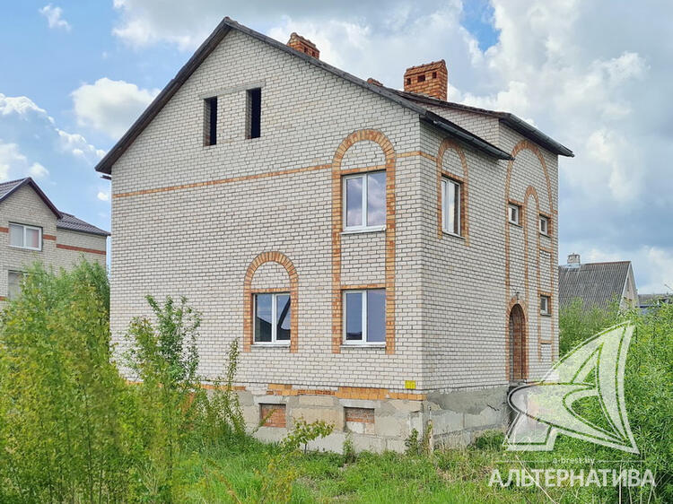 Дом под чистовую отделку в г.Бресте. 2 этажа, цокольный этаж. Общ.СНБ - 257,6 кв.м, общ.- 164,4 кв.м, жил.- 101,7 кв.м, кух.- 9,8 кв.м. 5 комнат, потолки - 2,65 м.