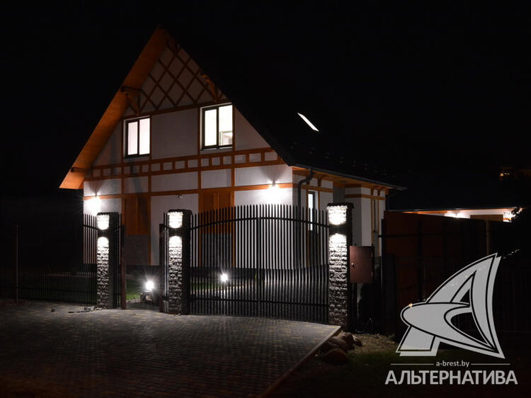 Жилой дом в г.Бресте. 2018 г.п. 1 этаж, мансарда. Общ.СНБ - 154,7 кв.м, общ.- 150,5 кв.м., жил. - 62,9 кв.м., кух. - 43,1 кв.м. 4 комнаты, высота потолка - 2,8 м.