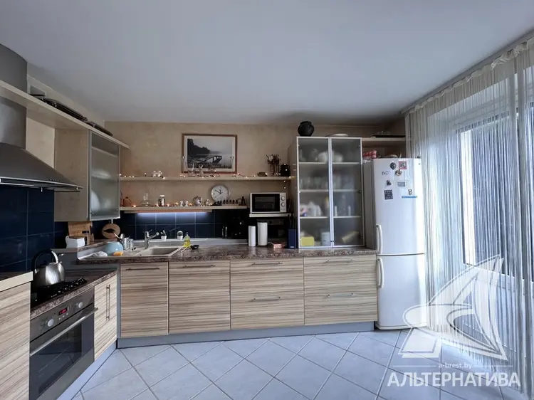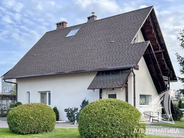 Жилой дом в г.Бресте. 1999 г.п. 1 этаж, мансарда, подвальный этаж. Общ.СНБ - 203,3 кв.м, общ.- 134,7 кв.м, жил.- 56,7 кв.м, кух.- 16,8 кв.м. 4 комнаты, высота потолка - 2,9 м.