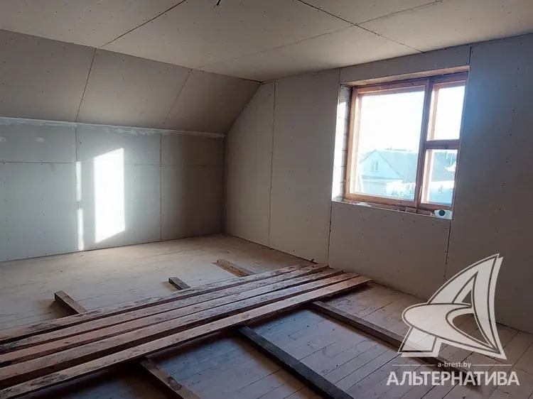 Коробка жилого дома в г.Бресте. 1 этаж, мансарда. Общ.СНБ - 197,11 кв.м, общ.- 113,0 кв.м, жил.- 113,0 кв.м, кух.- 16,6 кв.м. 5 комнат, высота потолка - 2,8 м.