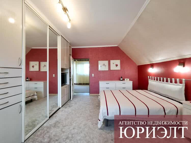 Продаётся жилой дом мансардного типа 1999 года постройки р-н Берёзовка. Общая площадь по СНБ 203.3 кв.м., общая 134,7 кв.м., жилая 56.7 кв.м., состоит из четырёх жилых комнат, гостиной и кухни, площадью 16.8 кв.м. Есть подвальный этаж, разделённый на несколько помещений. Стены: газосиликатный кирпич и блок, фасад утеплён и отделан штукатуркой "американка". Кровля-мягкая битумная черепица. Коммуникации: электричество-централизованное, газ-централизованный (отопление-газовый котёл), водоснабжение-централизованное и скважина, канализация-автономная и подведена централизованная. Участок 0.0741 га, ровной формы, огорожен по периметру и облагорожен. На территории участка расположен гостевой домик мансардного типа с русской печью и террасой для отдыха.
