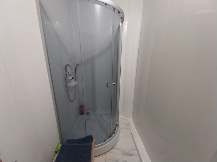 При оборудовании ванной сделал утепление и изоляцию "сауна" . Благодаря этому в душе жарко , как в бане. Есть туалет.