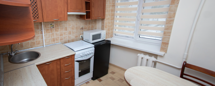 На кухне все необходимое для приготовления пищи, посуда, чай, кофе, сахар, соль, подсолнечное масло.