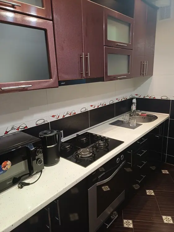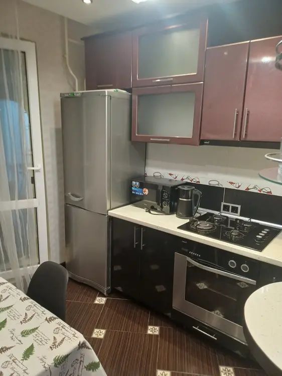У дома остановка продуктовый магазин , в шаговой доступности гипермаркет,центр через мост