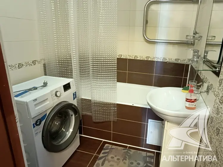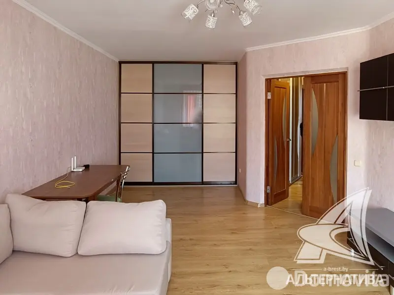 1-комнатная квартира, г. Брест, пер. 3-ий Заводской, 2009 г.п., 9 / 10 кирпич, 46,0 / 42,9 / 20,9 / 11,0, санузел раздельный, лоджия застеклена, стеклопакеты, межкомнатные двери - МДФ, входная дверь двойная - металлическая и деревянная, потолки - снежка (2,53 м), полы - ламинат и плитка (в кухне, в санузле), стены оклеены обоями, в санузле современная плитка, телефон, домофон. Кухонный гарнитур, электрическая плита, вытяжка, холодильник, обеденный стол, угловой диван, шкаф-купе в коридоре и в комнате, корпусная мебель, диван, полки на лоджии. Окна выходят на зеленую зону. Один грузопассажирский лифт. Дом расположен в глубине двора. Лот - 251044. Смотреть подробнее.