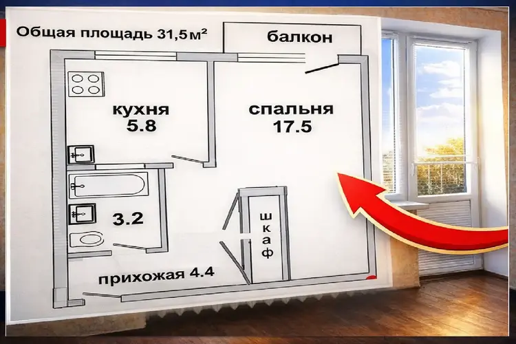 • Спальня: 17,5 м² с выходом на балкон 3,5 м² – ваша зона для утреннего кофе.