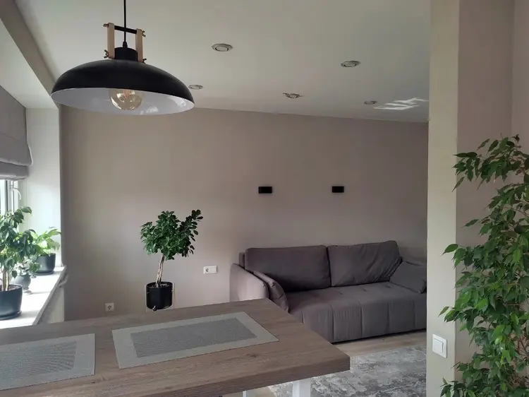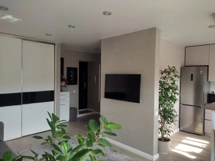 Современный ремонт с продуманным дизайном: штукатурка и обои под покраску, натяжные потолки 2,55 м
