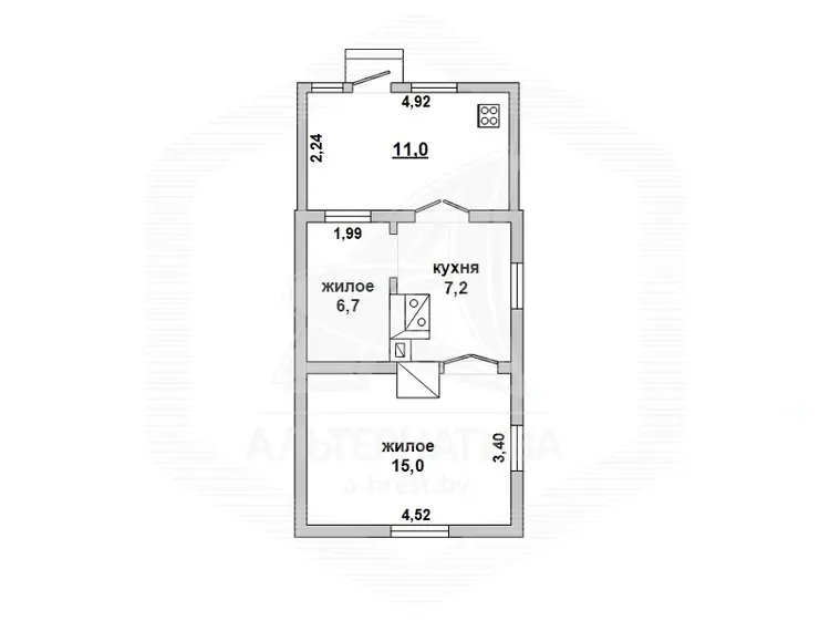 Квартира в блокированном жилом доме в г.Бресте. 1959 г.п. 1 этаж. Общ.СНБ - 39,9 кв.м, общ.- 28,9 кв.м, жил.- 21,7 кв.м, кух.- 7,2 кв.м. 2 комнаты, потолки - 2,7 м.