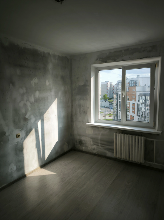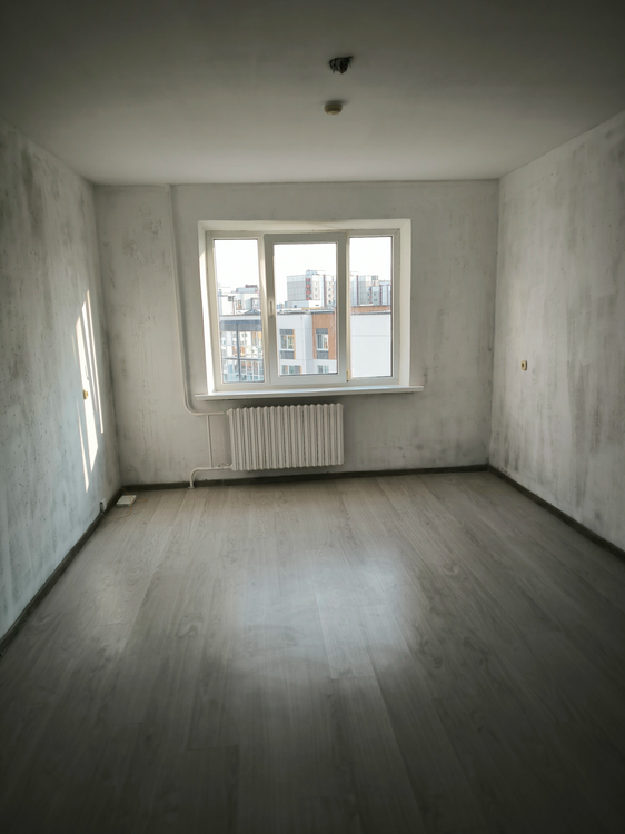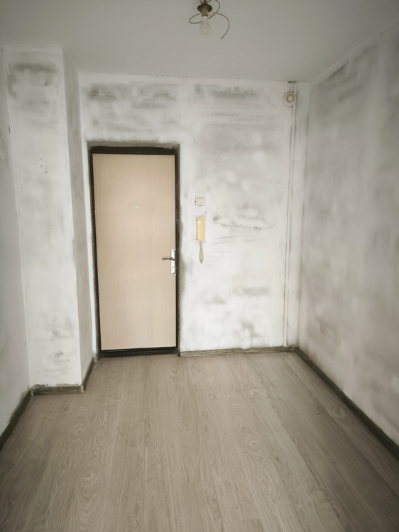Ремонтные работы выполнены под чистовую отделку, потолки покрашены, пол ламинат, стены готовы под окрашивание или поклейку
