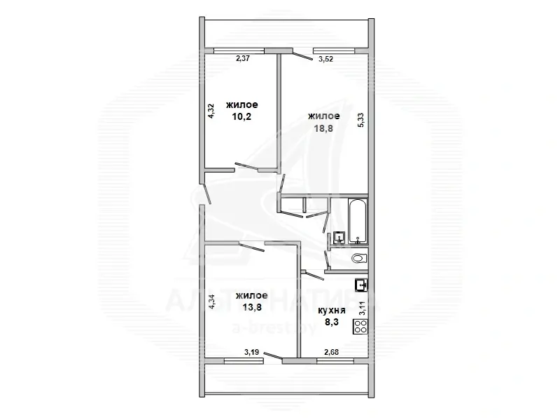 3 комнаты