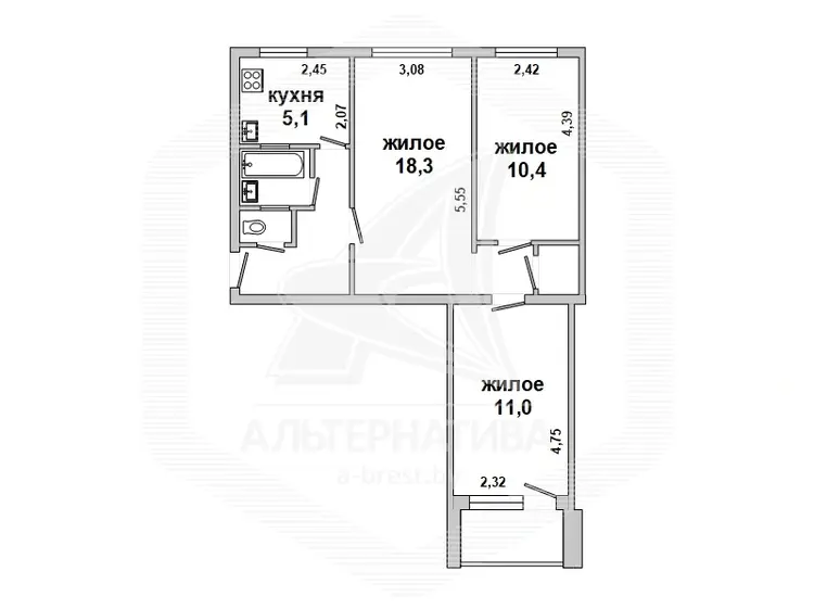 3 комнаты
