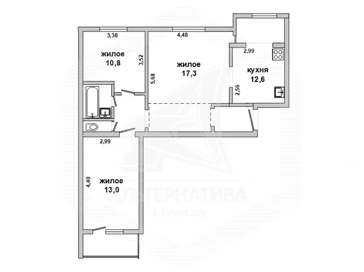 3 комнаты