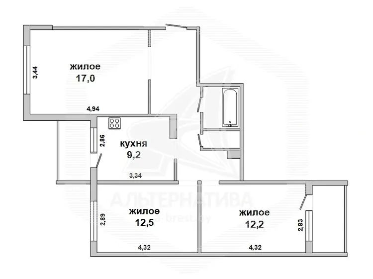 3 комнаты