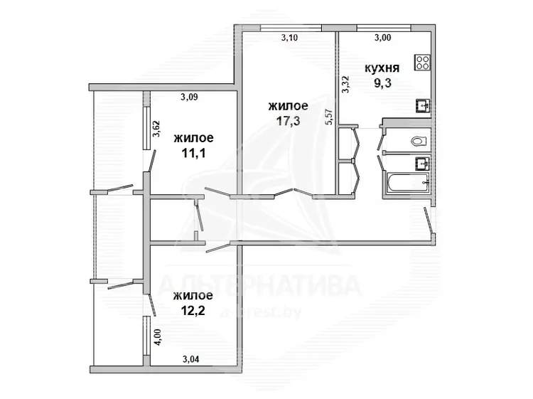 3 комнаты