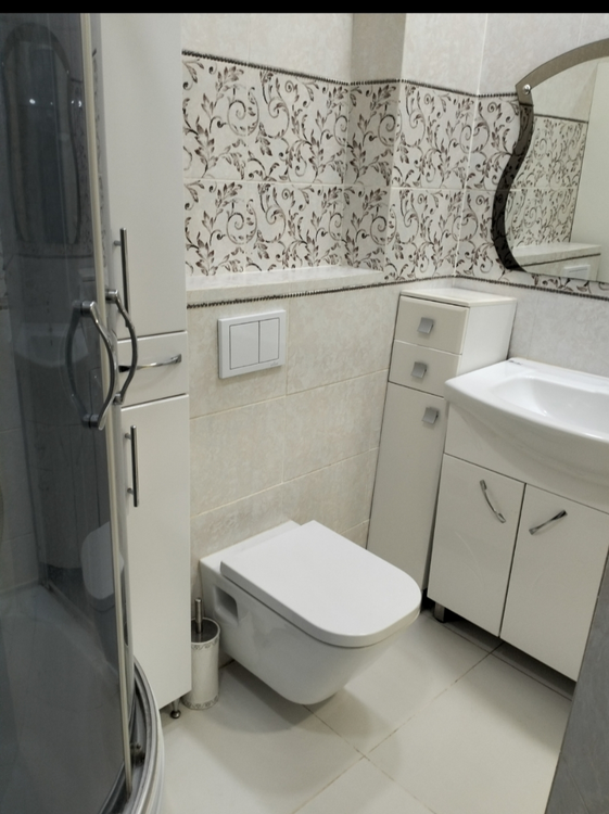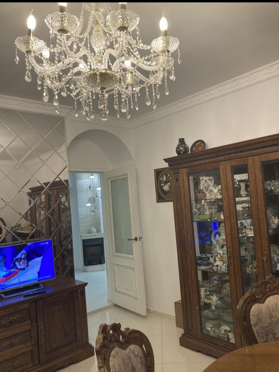 Вся квартира в белых / светлых тонах. В квартире остаётся душевая кабина , унитаз ( roca, Испания ) с инсталляцией , шкафчики и ящики ,пеналы в ванной комнате ( без стиральной машины ), в прихожей электро камин , шкаф - купе , кухня встроенная + стеклянный стол диван варочная поверхность + духовка ( Италия ), небольшая посудомоечная машина ( без холодильника ).встроенный распашной шкаф на 2 двери , шкафы - купе , гардеробная зона ,изготовлялась на заказ .фасады - массив дуба / зеркало / стекло ( белые ).
