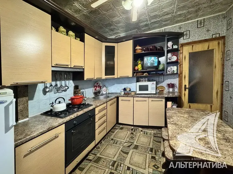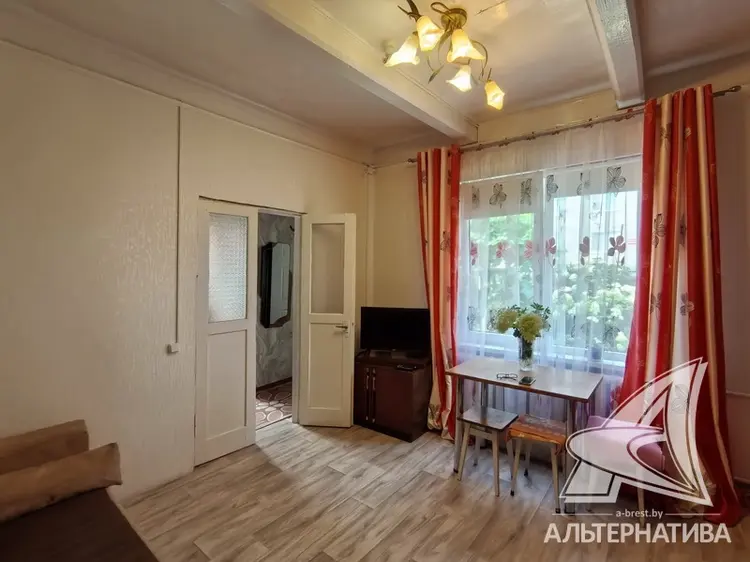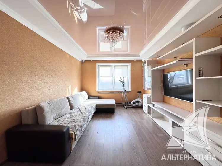 Квартира в блокированном жилом доме в г.Бресте. 1957 г.п. Реконструкция 2018 г. 1 этаж. Общ.СНБ - 85,6 кв.м, общ.- 79,9 кв.м, жил.- 52,0 кв.м, кух.- 9,1 кв.м. 4 комнаты, высота потолка - 2,50 м.