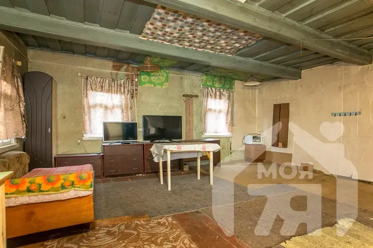 -Бревенчатый дом площадью 38 кв.м с печным отоплением. Вода из собственного колодца, а газ проходит по улице, что оставляет понятную и реальную перспективу повышения уровня комфорта.