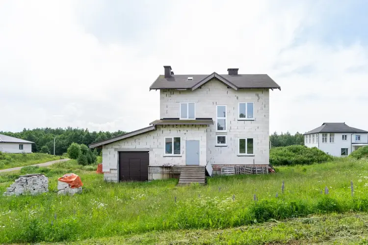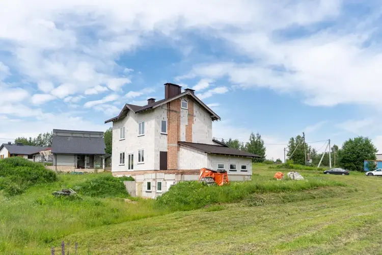 Фундамент бетонный, стены из газосиликатного блока, перегородки из кирпича. Крыша - гибкая черепица Катэпал (Финляндия). Двухкамерные стеклопакеты. Теплые водяные полы на первом этаже.