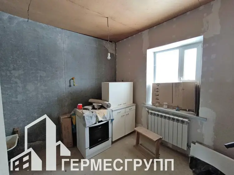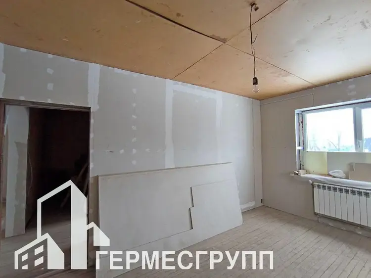 В доме расположены - три жилые комнаты, холл, кухня, котельная, совмещённый санузел, тамбур. Полы частично с подогревом. Стены из блока, крыша шифер, окна ПВХ. В доме разведена проводка, залита стяжка полов, подшиты потолки, стены оббиты гипсокартоном. Газ центральный, отопление газовое, вода -скважина, канализация местная.
