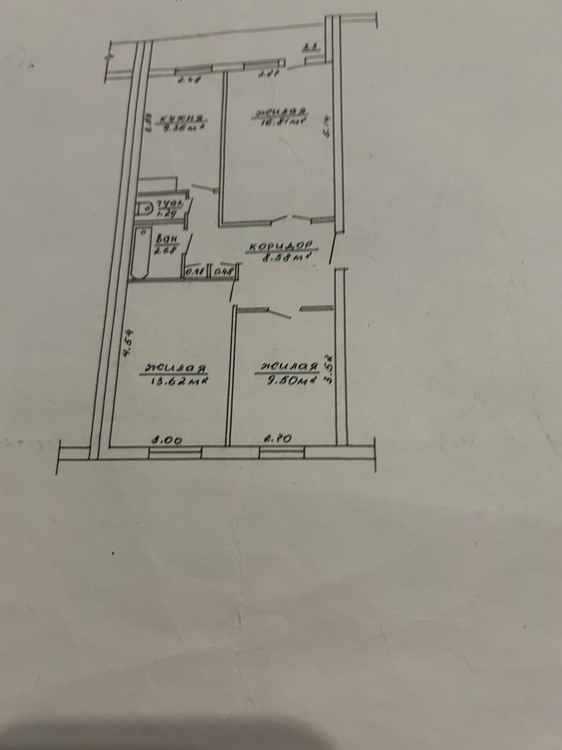 Квартира не угловая, общей площадью - 62,32 м.кв.