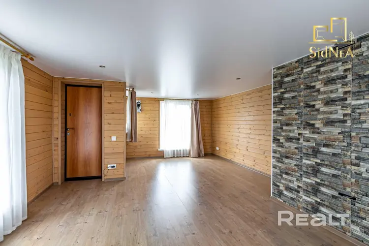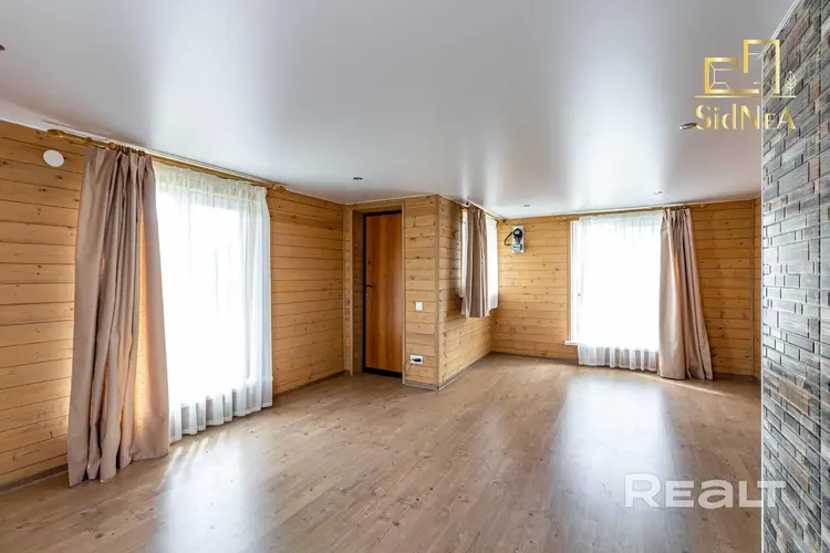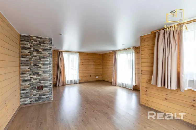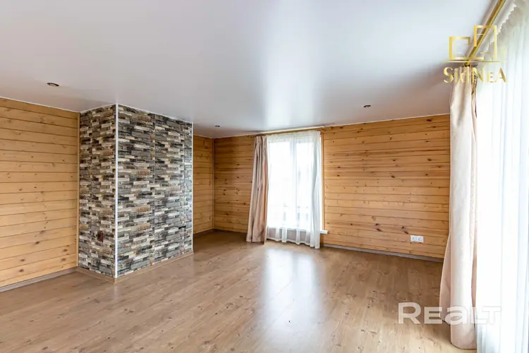 Потолки: натяжные в гостиной, ПВХ панели в помывочной, вагонка в парилке.