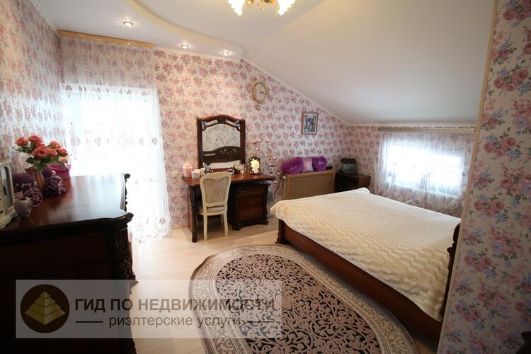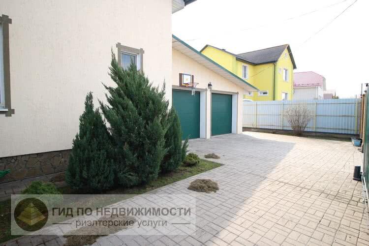 Дом блочный, утеплен пенопластом. Плиты перекрытия, внешняя отделка короед, мягкая кровля, окна ПВХ, гараж на два автомобиля с секционными воротами с электроприводом, ворота откатные с электроприводом, видеодомофон, сигнализация.