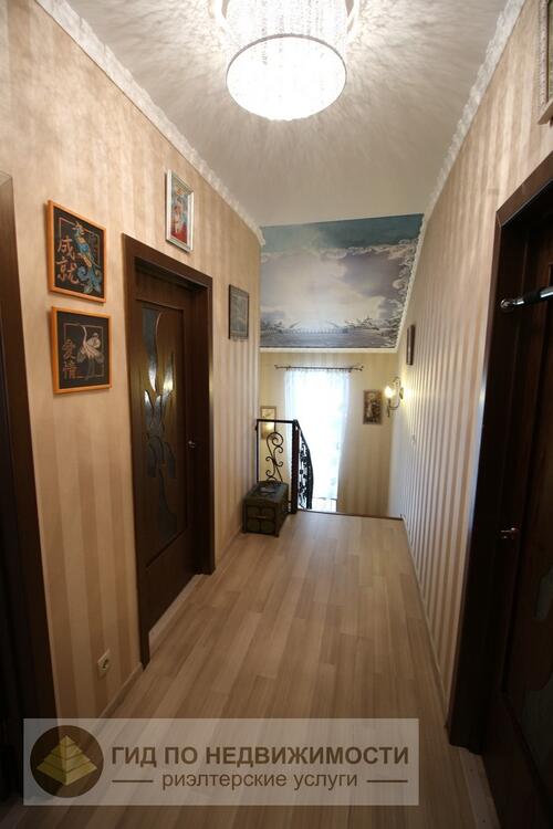 Высота потолка 2,8-3,07 метра. Качественные материалы отделки, полы с подогревом, панорамное остекление, итальянская плитка, на первом этаже межкомнатные двери с ручной росписью. Два санузла, прачечная. Выход на террасу из кухни. Дом продается частично с мебелью.