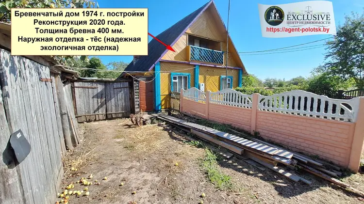 Основа райского места - это участок земли длиной фактически 138 м и шириной от 10 до 25 метров. На этой территории стоит крепкий бревенчатый дом с жилой мансардой. Толщина стен около 400 мм. Наружная отделка стен - это тёс. Это надежно и экологично.