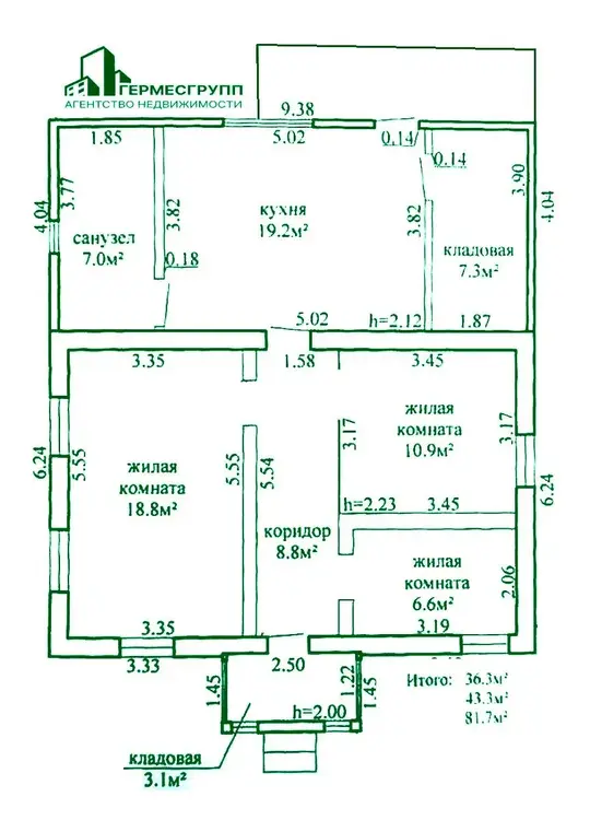 Общая площадь дома - 81,7 м2, жилая - 36,3 м2.