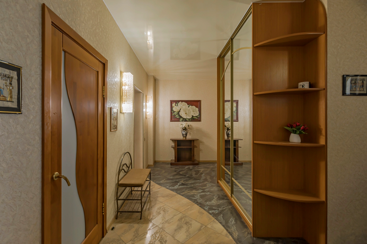 *** На 2-ой этаж ведёт лестница с удобным маршем. Четыре жилые комнаты: спальня для взрослых с двумя просторными гардеробными комнатами; три отдельные комнаты; большая гардеробная комната; санузел с душевой кабиной и гидромассажем. В жилых помещениях ламинированные полы. Встроенная мебель на всех этажах;