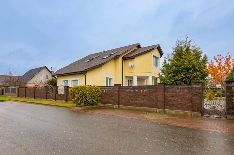 И вся эта красота скрывается за каменным забором с откатными воротами для въезда в гараж и калиткой.