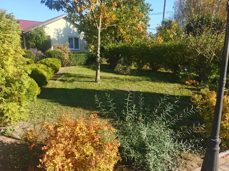 Всевозможные декоративные деревья, кустарники, цветники, плодоносящий фруктовый сад (яблони, груши, вишня, черешня, малина, ежевика и т.д.). Заложен фундамент под баню (вывод канализации);