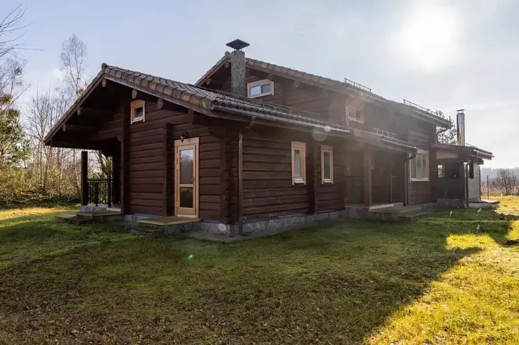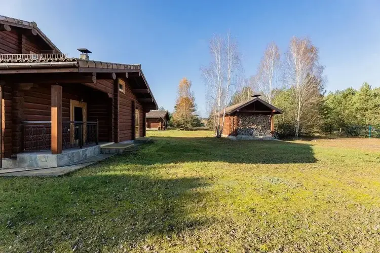 Готовый бизнес-Усадьба из двух домов на 45,6 сотках на берегу  реки Щара в одном из самых живописных мест Беларуси и Гродненской области. Два комфортабельных дома из высушенного бревна(лафета) на двух смежных участках, в частной собственности 45.6 соток. Дизайнерский проект, высококачественные натуральные материалы местного и импортного производства, использованы в отделке, при изготовлении мебели и строительстве дома. Вокруг лес, здесь по-настоящему тихо и ощущается полное единение с природой. Соседей не видно – только лес, река и луг.