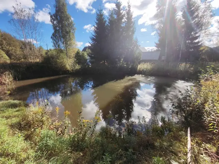 Участок ровный, прямоугольной формы, площадью 15 сот. 15 метров от дома искусственное озеро, волейбольная и детская площадка.