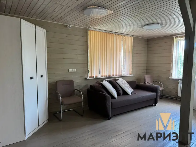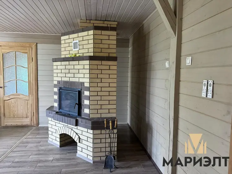 В 2017 году была проведена реконструкция. На первом этаже располагается просторная кухня, гостиная с камином, санузел и прихожая, высота потолков – 2.8 м. На второй этаж ведет деревянная лестница. На мансардном этаже располагается спальня, высота потолков 4.13 м. На цокольном этаже расположена сауна, гараж, кладовая и веранда.