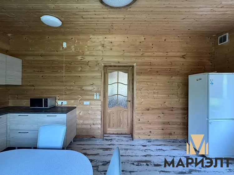 Фундамент – железобетонные блоки, наружные и внутренние стены из деревянного бревна, перекрытия – деревянный брус, окна стеклопакеты. Крыша – металлический профнастил, установлена водосточная система для крыши (водостоки). Установлен бойлер, котёл, септик.